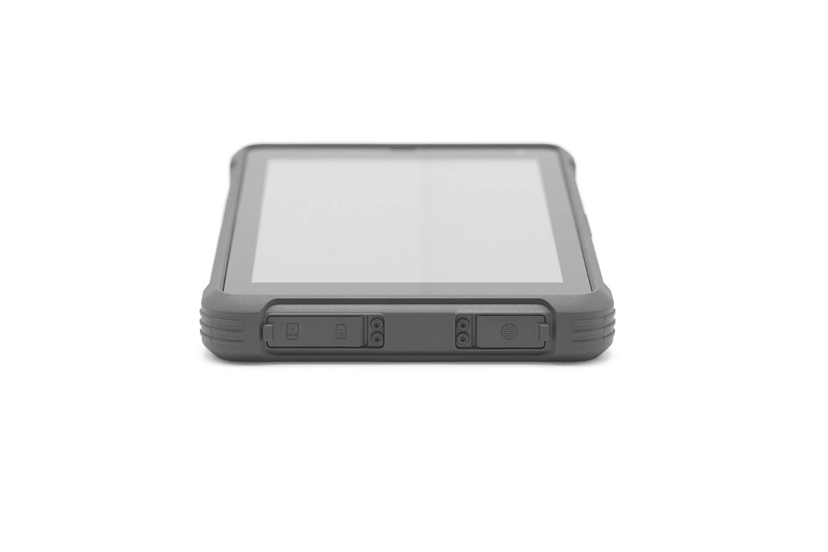 • Интерфейсы включают 1 Pogo pin (для USB и зарядки), 1 USB Type-C (для USB OTG и зарядки), 1 USB 2.0 Type-A, 1 разъем для подключения питания, а также 1 3,5-мм аудиоразъем. При желании количество разъемов можно увеличить: держатель для погрузчика и док-станция добавляют к этому списку COM-порт, дополнительные USB и полноразмерный RJ-45